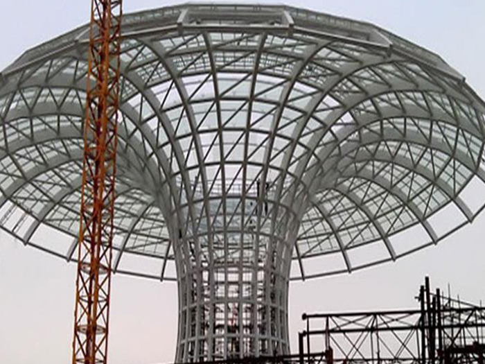 二、球形网架结构因其结构新颖,受力合理,自重轻、用钢量低等优点。如大型体育场馆球形武安螺栓球网架、公共场馆球形网架、电厂武安螺栓球网架、水泥工业球形网架、仓储物流球形网架、武安干煤棚工业球形网架、武安收费站武安加油站球形网架、展览中心、影剧院、商场、航站楼、候车厅、工厂武安车间、仓库、电视塔等球形螺栓球节点网架。国内球形网架结构主要分为:武安焊接球节点网架及螺栓球节点网架两种。螺栓球节点网架其构件工厂内加工量较大,现场安装便捷,适用于现场工期紧,武安施工条件、用电量受制约,网架形状复杂、武安杆件定位困难的异形结构。螺栓球节点球形网架系统基本由武安杆件、螺栓球、支撑支座等组成。按照节点形式可分为交叉武安桁架体系、四角锥体系、三角锥体系等。支撑方式多为固定支座支撑。对于大面积、大跨度及有特殊受力或伸缩要求的网架结构可采用橡胶支座、滑移支座、球铰支座等支撑形式,以满足结构自身的受力稳定、均衡,便于内力释放等设计要求。